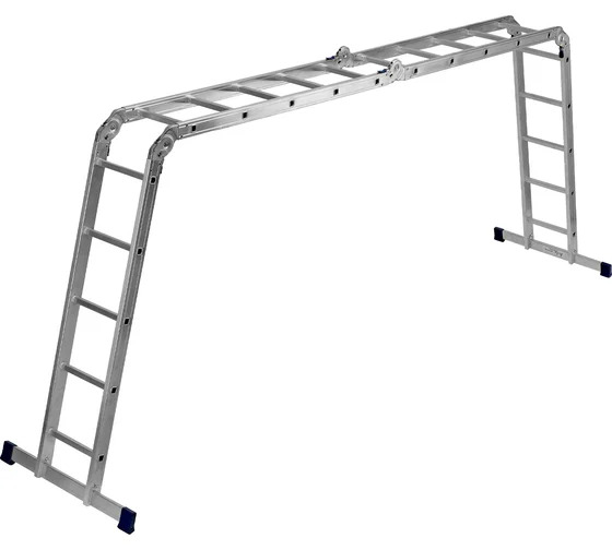 Шарнирная алюминиевая лестница СИБРТЕХ 4х5 97883 может трансформироваться в зависимости от выполняемых работ. Отличается надежной, устойчивой конструкцией, быстрой сменой положения за счет шарнирных механизмов. Защиту от скольжения на рабочих поверхностях обеспечивают заглушки и широкие траверсы.