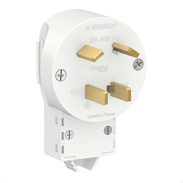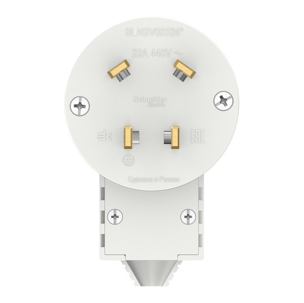Силовая вилка Systeme Electric BLANCA 3Р+N 32А, 400В, белая предназначена для присоединения бытовых электрических приёмников с номинальным напряжением не более 440 В и номинальным током не более 32А к сети переменного тока.