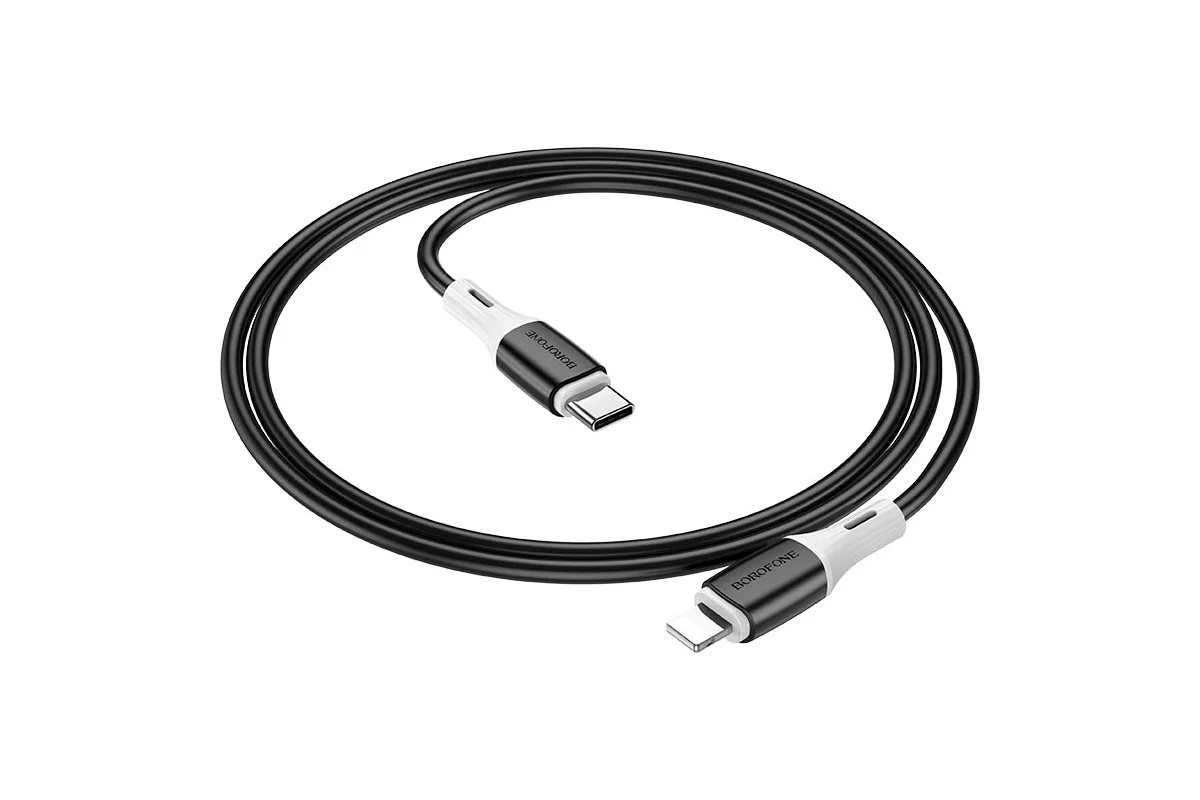 Коннектор: USB Type С - Lightning 8 pin Производитель: BOROFONE Вид кабеля: Круглый Максимальный ток: 3А Комплектация: USB-C кабель, упаковка Назначение: Зарядка и передача данных Интерфейс: Type-C, Lightning 8 pin Цвет: чёрный Материал: силикон Тип: USB-C кабель Предназначение: предназначен для передачи данных и подзарядки цифровых устройств Длина кабеля (м): 1 Совместимость: совместимые устройства с разъёмом USB Type-C на Lightning 8-pin Тип упаковки: коробка Особенности: Кабель для зарядки и передачи данных USB-C на Lightning 8-pin, 1м, ток до 3A. Поддержка быстрой зарядки PD 20W. Сердечник: (23/0.1)*2+(10/0.08)*2 OD3.2mm. Вес 25 г. Модель: BX79 Функции: Поддержка быстрой зарядки PD 20W. Вес в упаковке, г: 40 Размеры упаковки: 202х70х20 мм Рабочая температура: от -50°C до +250°C Разъём: USB-C - Lightning 8-pin