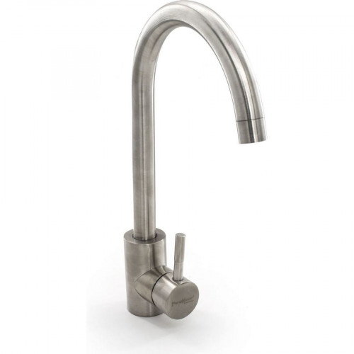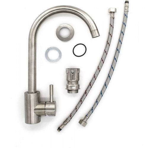 Смеситель позволяет регулировать поток воды и получать воду требуемой температуры при смешивании горячей и холодной воды, изготовлен из нержавеющей стали. Смеситель однорычажный, в комплекте с гибкой подводкой. Крепление гайка, картридж 40 мм.