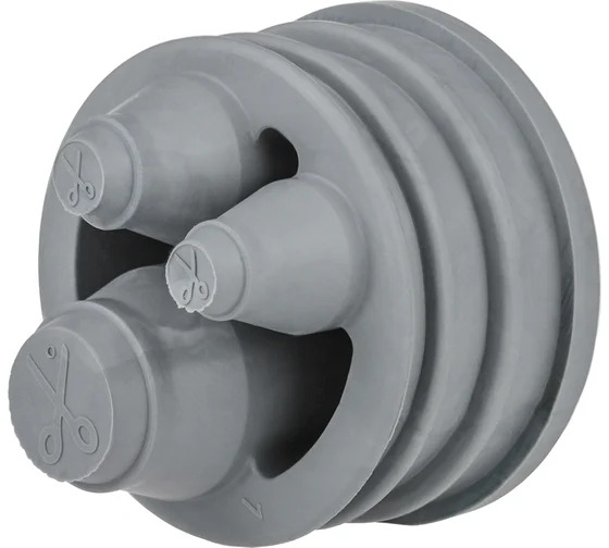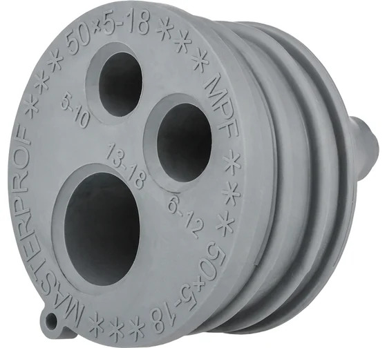 Манжета дренажная серая 50x5-18, ТЭП MPF ИС.131886 поможет подключить к канализационной трубе 50 мм до трех дренажных шлангов сушильных машин, водонагревателей, внутреннего и внешнего блоков кондиционеров, фильтров питьевой воды. Для сохранения герметичности соединения технологические отверстия запаяны. Перед установкой манжеты обрежьте по отметке острым ножом штуцер нужного размера.