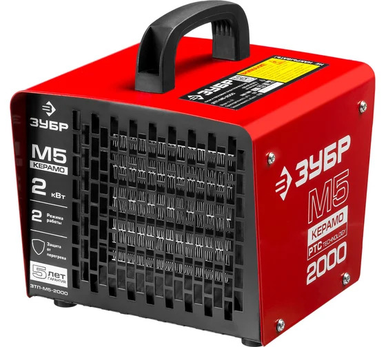 Тепловая электрическая пушка ЗУБР ЗТП-М5-2000 - имеет компактный размер, устойчивую конструкцию и приемлемую мощность для обогрева помещений площадью до 20 кв.м. Изделие оснащено кварцевым нагревательным элементом.