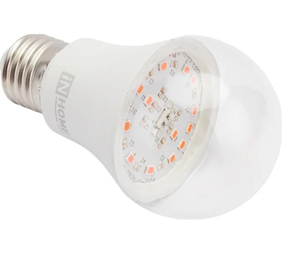 Светодиодная лампа IN HOME LED-A60-FITO 15Вт 230В Е27 4690612036502 - это идеальное решение для стимуляции роста рассады и микрозелени, дополнительной подсветки комнатных светолюбивых растений и выгонки луковичных цветов в осенне-зимний период. Излучают сбалансированный свет, который способствует укреплению стебля и росту плотных листьев. Использование светодиодов снижает испарение, тем самым увеличивая период между поливами. Лампу можно расположить на расстоянии от 30 до 60 см от растения. Рекомендуемое время освещения - от 8 до 14 часов. Не забывайте оставлять растения на 7-8 часов в темноте для обеспечения темновой фазы фотосинтеза. Подходят для использования дома и в офисе.