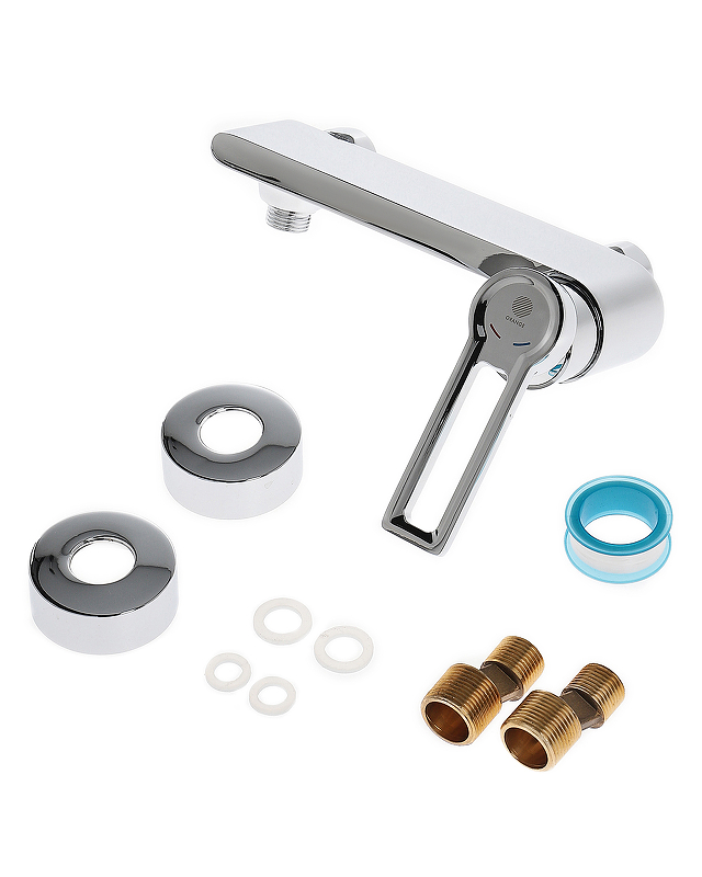 смеситель, 2 декоративные шайбы, 2 эксцентрика, гарантийный талон, инструкция по установке и эксплуатации