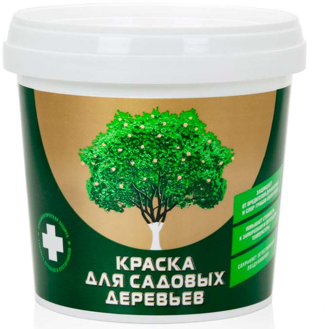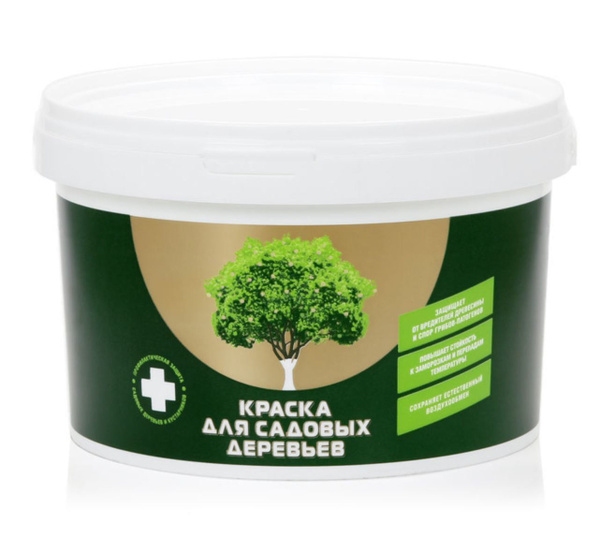 белая матовая экологичная краска для защиты и декоративной отделки стволов и крупных ветвей садовых деревьев и кустарников