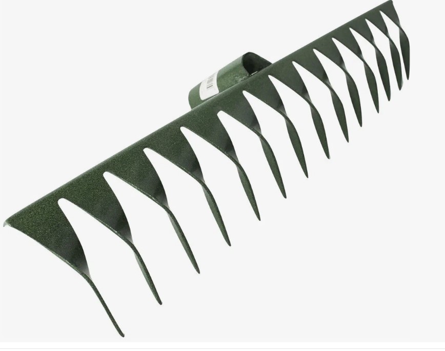 Грабли 14-ти зуб витые ЭМАЛЬ б/ч 2 мм арт. ГВ-14— садовый инвентарь, предназначенный для рыхления, разравнивания почвы при посадке, удаления сорняков, мусора, листьев, камней и т. д. Некоторые характеристики: ширина грабель — 36 см; длина зубьев — 7 см; материал — сталь; страна происхождения — Россия. Обычно на грабли устанавливается черенок диаметром 30 мм и длиной 1300 мм, но в комплектацию граблей он не входит. Отличаются высоким качеством, прочностью, надёжностью и долговечностью.