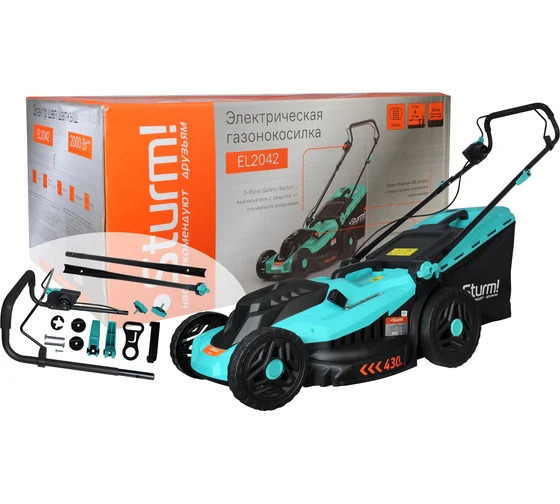 Электрическая газонокосилка Sturm EL2042 подходит для скашивания и сбора травы. Ременная передача обеспечивает высокий крутящий момент на небольших оборотах, что продлевает срок службы и обеспечивает низкий уровень шума. Удобство работы. Высококачественный выключатель с защитой от случайного включения дает возможность управлять газонокосилкой любой рукой. Большой быстросъемный 50-литровый травосборник уплотняет скошенную траву, сокращая время опорожнения и увеличивая время работы.