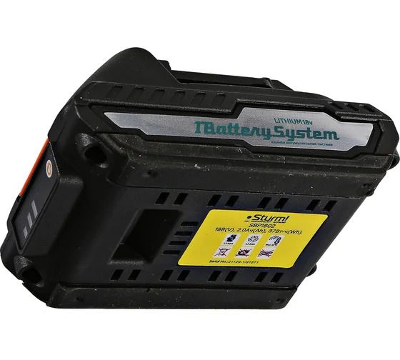 Аккумулятор 1BatterySystem (18 В; 2 Ач) Sturm SBP1802 подходит для всех инструментов Sturm с логотипом 1BatterySystem. Использование аккумуляторов единой аккумуляторной системой позволяет сэкономить средства, достаточно приобрести 1-2 аккумулятора и 1 зарядное устройство для всей линейки. Компания "Sturm!" гарантирует наличие аккумуляторов данной аккумуляторной системы в розничной сети в течение, как минимум, 15 лет.