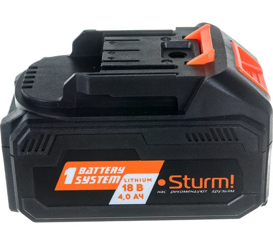 Аккумулятор 1BatterySystem (18 В; 4 Ач) Sturm SBP1804 - универсальная аккумуляторная система. Подходит ко всей линейке аккумуляторного инструмента Sturm! с данным логотипом. Использование аккумуляторов единой аккумуляторной системой позволяет сэкономить средства, достаточно приобрести 1-2 аккумулятора и 1 зарядное устройство для всей линейки.