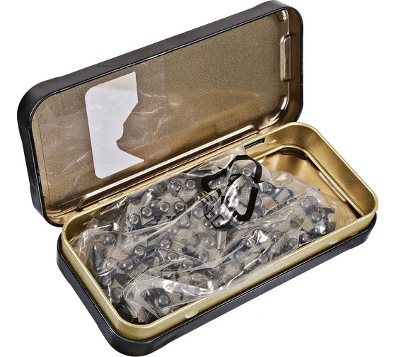 ChromeForce - Покрытие зуба промышленным хромом увеличивает прочность режущей кромки в 2 раза ! По сравнению с цепями для хобби-техники. StretchResist-Минимальное растяжение благодаря высококачественной закалке заклепки цепи. LowVibration-Инновационная конструкция с системой гашения вибрации снижает ее воздействие на руки оператора на 25%. MetalCase - удобный металлический кейс для хранения и транспортировки цепи, метизов.