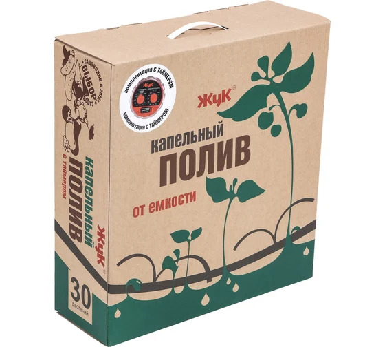 Капельный полив Cicle Жук от ёмкости, на 30 растений, с таймером 4607156367573 полностью готов к работе. Используется в парниках и теплицах, а также на открытом грунте. Предназначен для автоматического полива грядки длиной 6 метров. Имеет электронный таймер, с помощью которого можно настраивать продолжительность и интервалы между поливами. Магистральный шланг присоединяется к бочке при помощи штуцера. Вода поступает сразу к корням растений, что повышает урожайность.