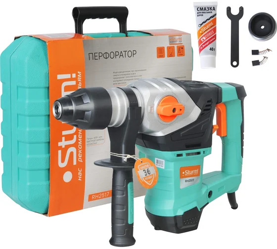 Перфоратор Sturm RH2517 - инструмент мощностью 1700 Вт. Благодаря мощному ударному механизму можно выполнять сверлильные работы не только в стали и дереве, но и в бетоне. Перфоратор работает в трех режимах.