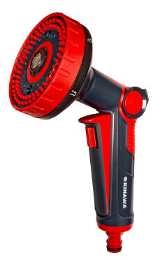 6 режимов распыления: тонкий туман (для обработки растений химикатами), плоская струя (мойка окон, автомобилей), центральная струя (мощный поток для полива), душ (мягкое орошение рассады), режим «Jet» (сильная струя для удаления грязи), режим «Full» (максимальный поток воды)