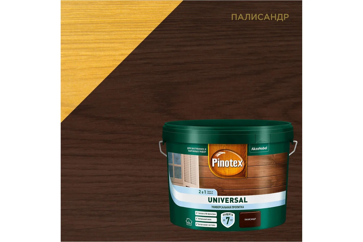 Универсальная пропитка для древесины Pinotex Universal 2 в 1 – идеальное решение для защиты и ухода за древесными изделиями. Эта пропитка для дерева предназначена для наружных работ и обеспечивает надежную защиту ваших деревянных конструкций от неблагоприятных погодных условий. Пропитка для дерева Pinotex Universal 2 в 1 обладает водоотталкивающими свойствами, что делает её незаменимой в условиях повышенной влажности. Применение данной пропитки позволяет значительно продлить срок службы деревянных элементов, предотвращая проникновение влаги и развитие плесени, гнили и грибка. Уникальная формула «2 в 1» позволяет использовать пропитку как самостоятельное средство для обработки древесины, сохраняя её природную текстуру и красоту. Пропитка по дереву в цвете "Орегон" придаст древесине насыщенный оттенок, подчеркнув её естественный рисунок. Универсальная пропитка для дерева Pinotex Universal 2 в 1 легко наносится и быстро высыхает, что значительно ускоряет процесс обработки. Она идеально подходит для использования на фасадах домов, изгородях, садовой мебели и других наружных деревянных конструкциях. Благодаря удобству в применении и высокому качеству, пропитка по дереву Pinotex станет вашим незаменимым помощником в уходе за древесиной.
