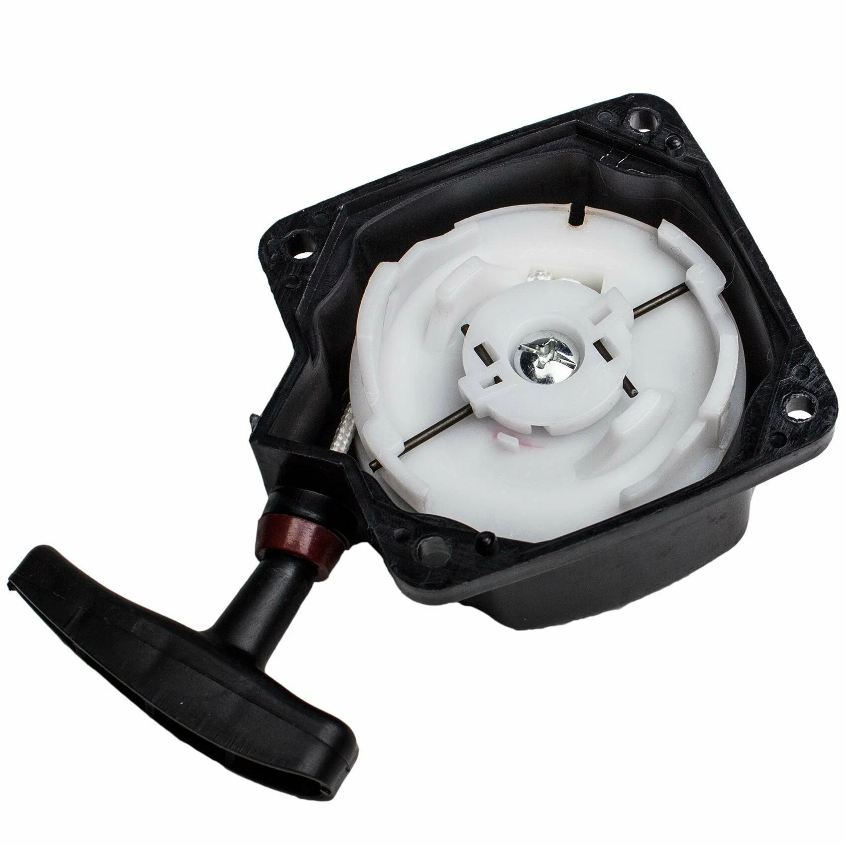Название: Стартер для мотокосок 33/43/52 см³ с метал. усом Стартер ручной для мотокосоки, триммеров, бензобуров и другого бензоинструмента с объемом двигателя от 33 до 52 см3. Расстояние между посадочными местами – 66 мм, высота – 37 мм. Имеет два металлических усика, что обеспечивает надежность и прочность при запуске двигателя инструмента. Изготовлен из качественной пластмассы, что гарантирует долговечность и надежность в использовании. Подходит для следующих моделей триммеров: HUMER, Red Verg, PROMO, PBC-52 Patriot, Home Garden, PT443, The One, Парма, практик, БТК-052 и PROMO PBC-52. Также может использоваться для сборки мотобуров, садового триммера и мотобура.
