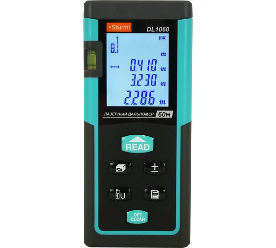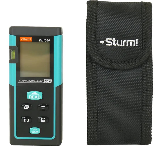 Лазерный дальномер Sturm DL1060 предназначен для измерения расстояния вплоть до 60 метров. Модель отличается хорошим функционалом: измерение длины, площади, объема, функция Пифагора и непрерывного измерения, а также суммирование и вычитание данных. Также имеется возможность измерения через препятствия или барьер.