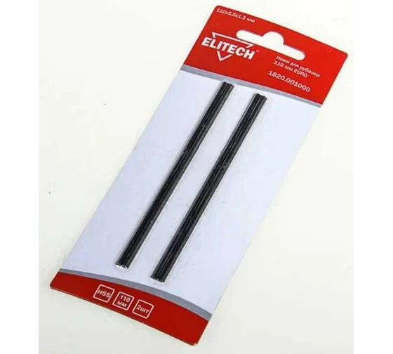 Ножи (2 шт; 110 мм) Elitech 1820.001000 используются совместно с электрическими рубанками Р110 и Р110К. Предназначены для строгания деревянных заготовок. Изготовлены из быстрорежущей стали HSS и имеют высокую прочность.