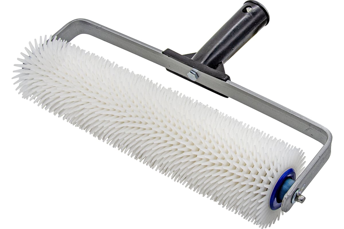 Игольчатый валик РемоКолор 300мм 04-7-330 шириной рабочей поверхности 300 мм. с малой острой иглой из ПНД, с длиной иглы 14 мм. и диаметром ролика 72 мм. Каркас ролика-полиэтиленовая труба, крепление ролика шайба/шплинт. Бюгель изготовлен из оцинкованной стальной проволоки диаметром 6 мм. с ручкой из первичного полиэтилена. Валик применяется для укладки ровного полимерного или бетонного пола с толщиной слоя до 13 мм.