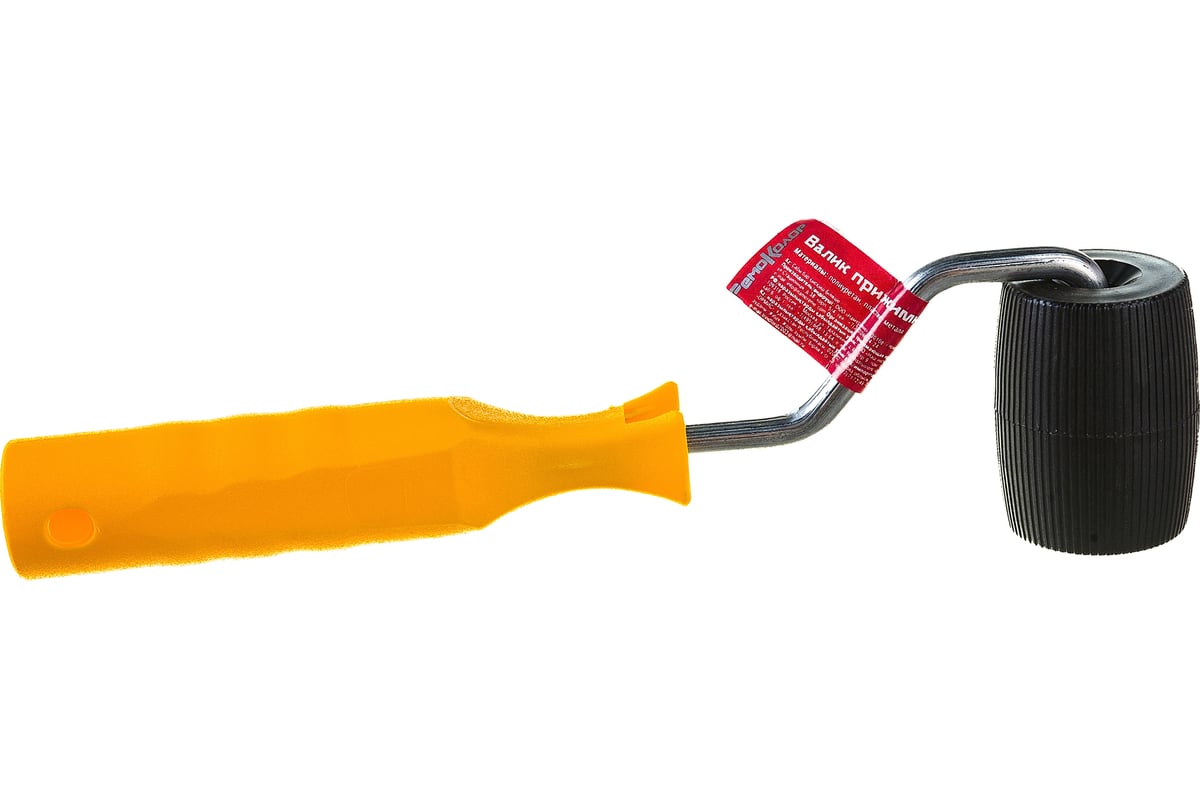 Валик прижимной "Бочка", 40мм. Прижимной валик из пластмассы, шириной 50 мм, диаметром ручки 6 мм, предназначен для прикатки швов при наклеивании обоев. Его применение повышает качество работ - благодаря ровной поверхности валика можно плотно прижать и разгладить обойное полотно, избавиться от воздушных пузырьков.