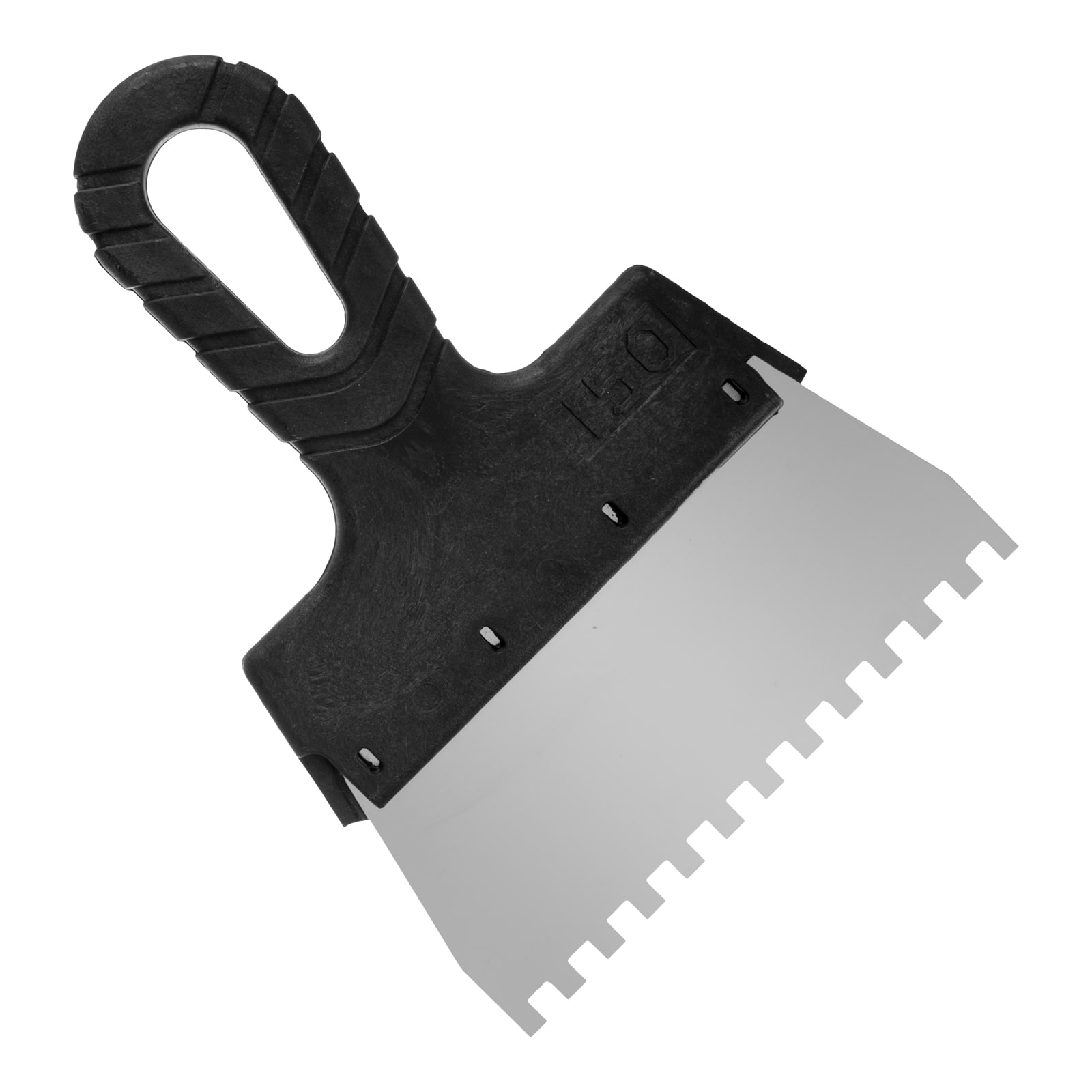 Фасадный зубчатый шпатель, 150 мм, зуб 6x6 мм РемоКолор используется во время укладки кафельной плитки. Материал: нержавеющая сталь, пластиковая рукоятка, квадратный зуб. Толщина стали – 0,45 мм. Для нанесения клеевых составов, цементных монтажных смесей при укладывании кафельной плитки, приклеивании стеновых панелей.