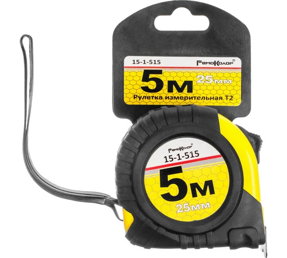 Рулетка РемоКолор 15-1-515 используется для измерения поверхностей, деталей, заготовок в ходе отделочных, ремонтных, строительных работ. Обрезиненный корпус из ABS-пластика отличается прочностью и удобством. Стальная лента длиной 5 метров имеет трехслойное покрытие. Двойной фиксатор позволяет остановить ленту в нужном положении.