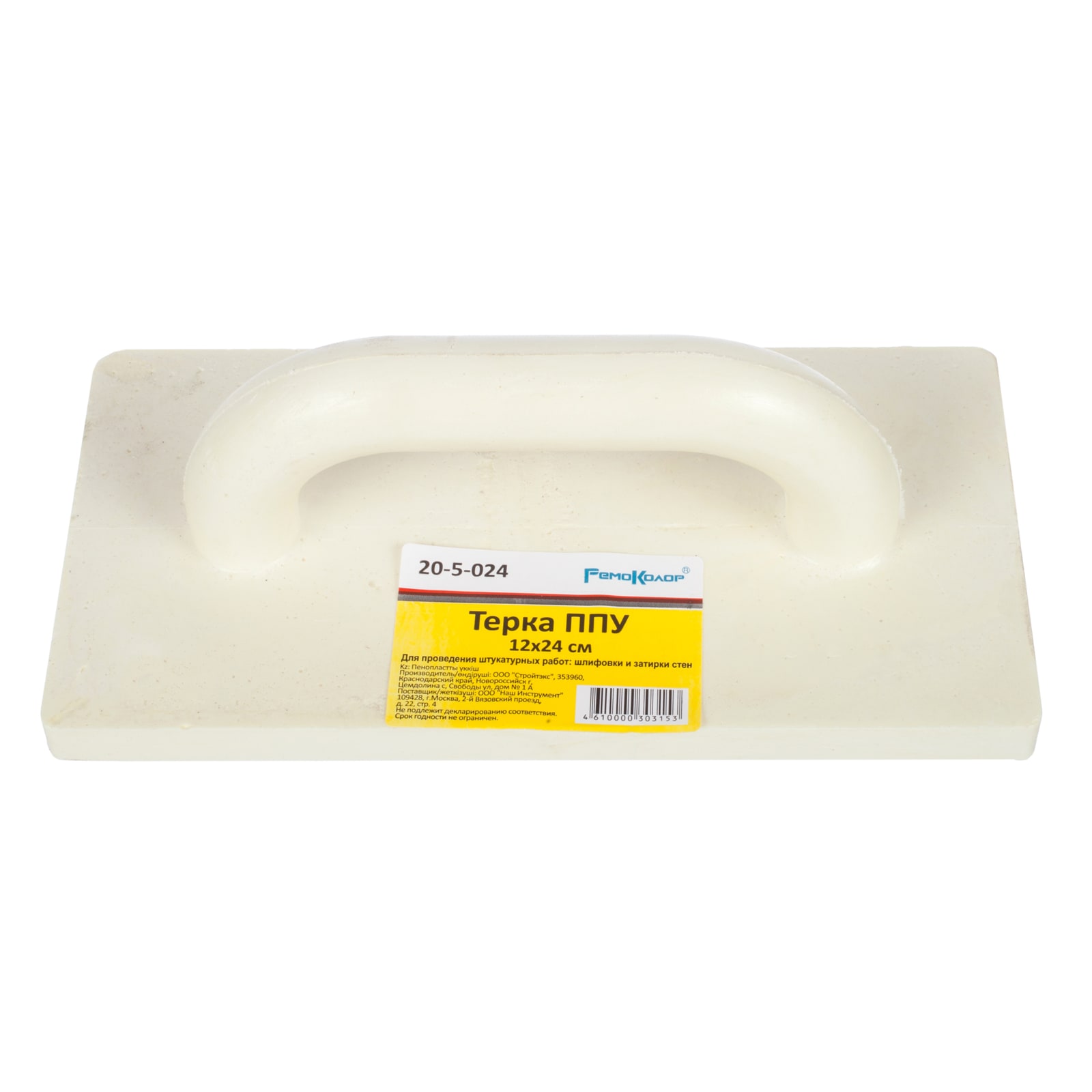 Терка пенополиуретановая РемоКолор 120х240 мм 20-5-024 предназначена для штукатурных работ, а также для обработки больших площадей поверхностей различной степени сложности.Терка ППУ стандартная 120х240 мм обладает грубой рабочей поверхностью, что позволяет равномерно наносить раствор на стену. Изделие изготовлено из пенополиуретана, имеет удобную ручку для работы. Также терку можно использовать при затирке и шлифовании отштукатуренных поверхностей.