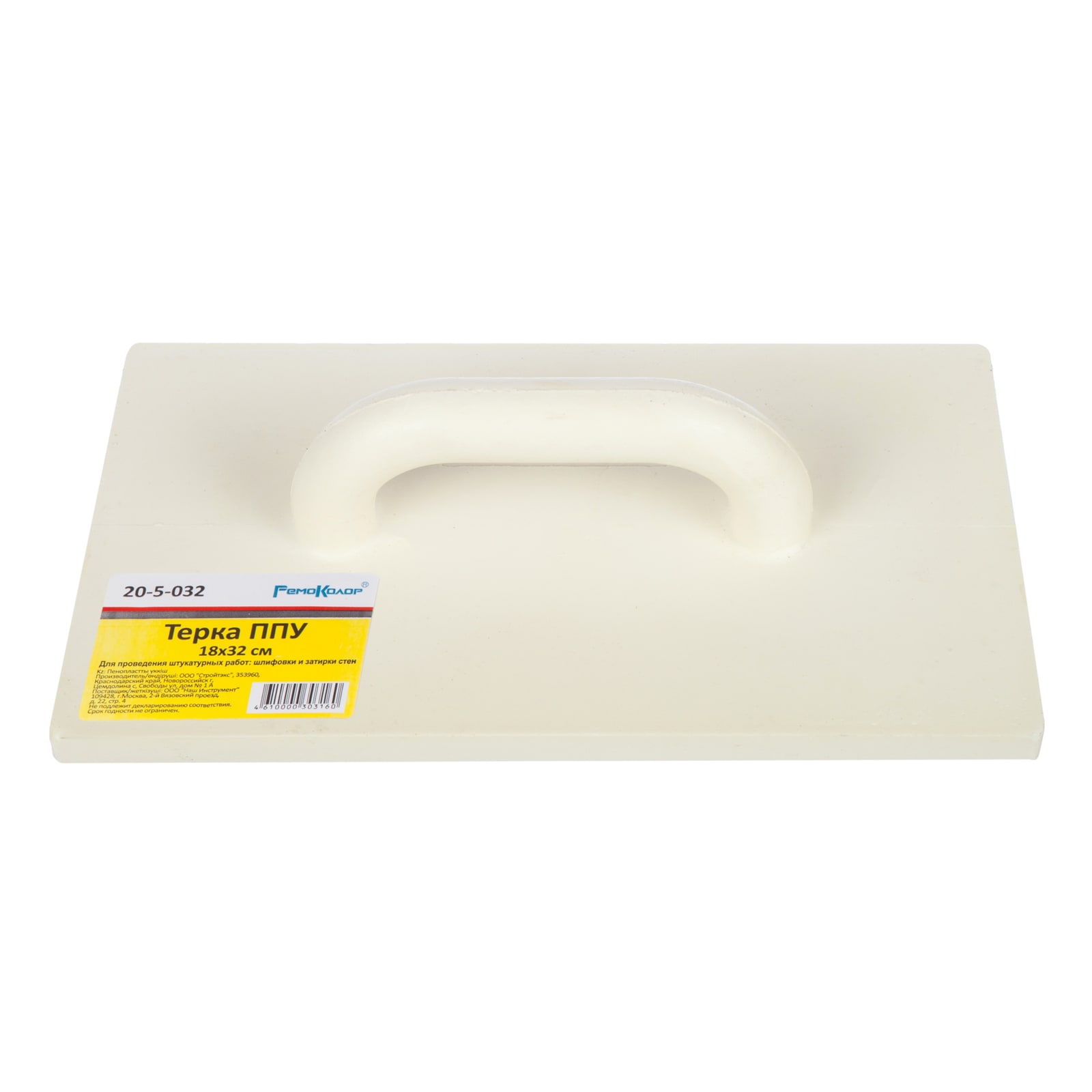 Терка пенополиуретановая РемоКолор предназначена для штукатурных работ, а также для обработки больших площадей поверхностей различной степени сложности.Терка ППУ стандартная обладает грубой рабочей поверхностью, что позволяет равномерно наносить раствор на стену. Изделие изготовлено из пенополиуретана, имеет удобную ручку для работы. Также терку можно использовать при затирке и шлифовании отштукатуренных поверхностей.