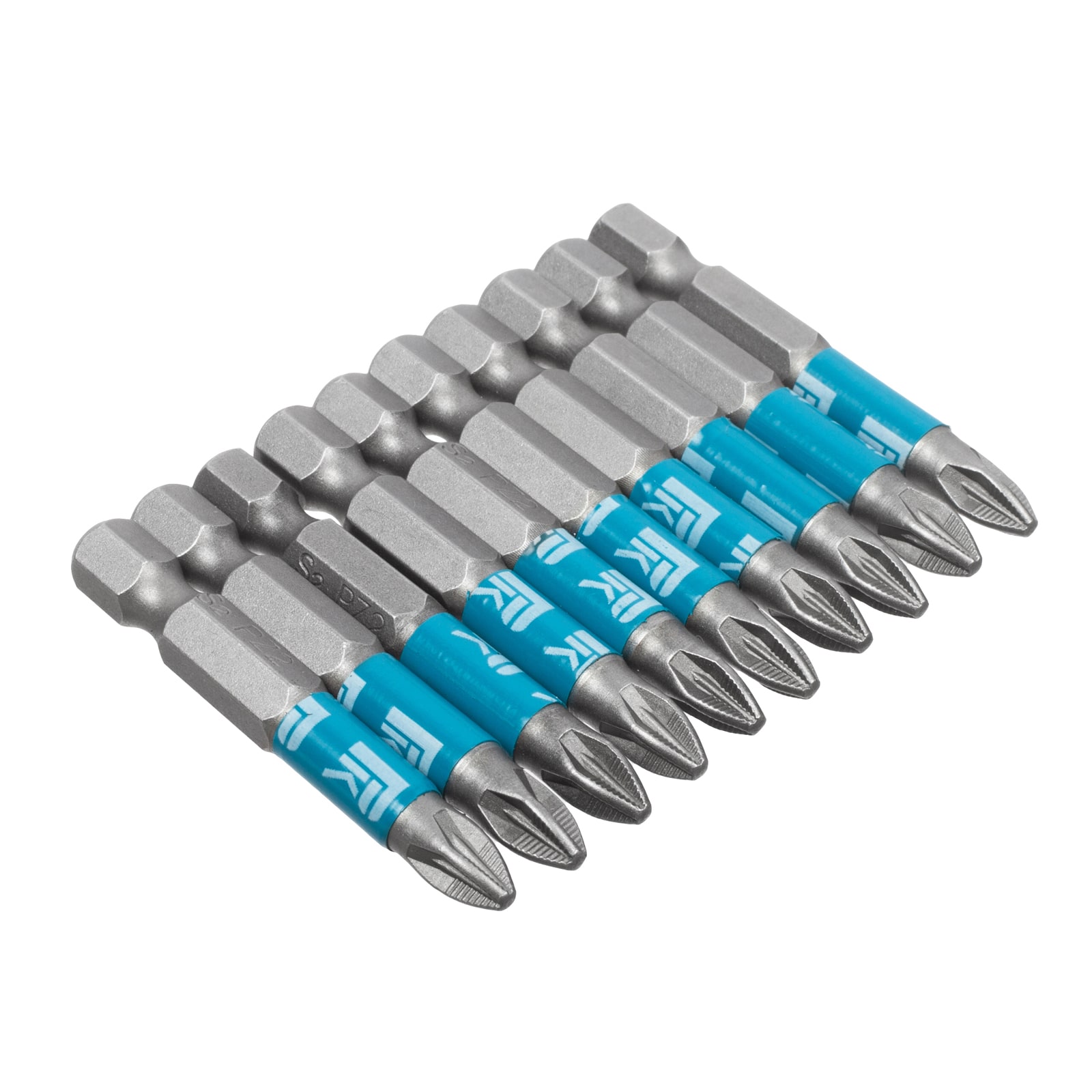 Набор бит PZ2 х 50 мм включает в себя 10 насадок из стали S2 с хвостовиком 1/4 дюйма, рассчитанных на работу с шуруповертом. Оснастка служит для монтажа и демонтажа шурупов, саморезов и других резьбовых соединений. Шлиц PZ имеет 4 дополнительных ребра, за счет чего предотвращается проскальзывание биты в крепеже, повышаются точность и эффективность работ. Удлиненное основание 50 мм облегчает работу в труднодоступных местах.