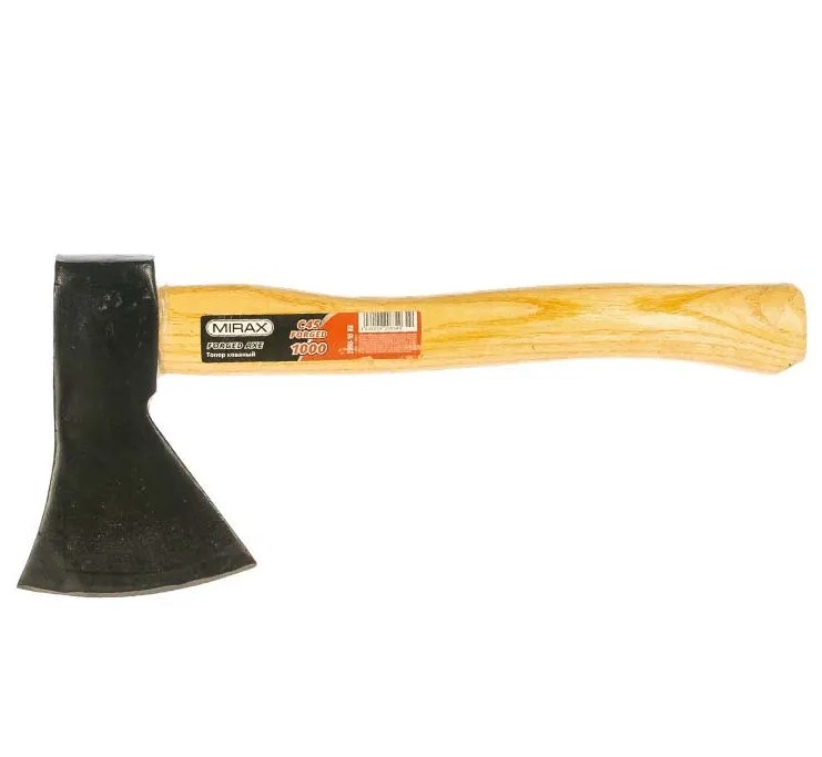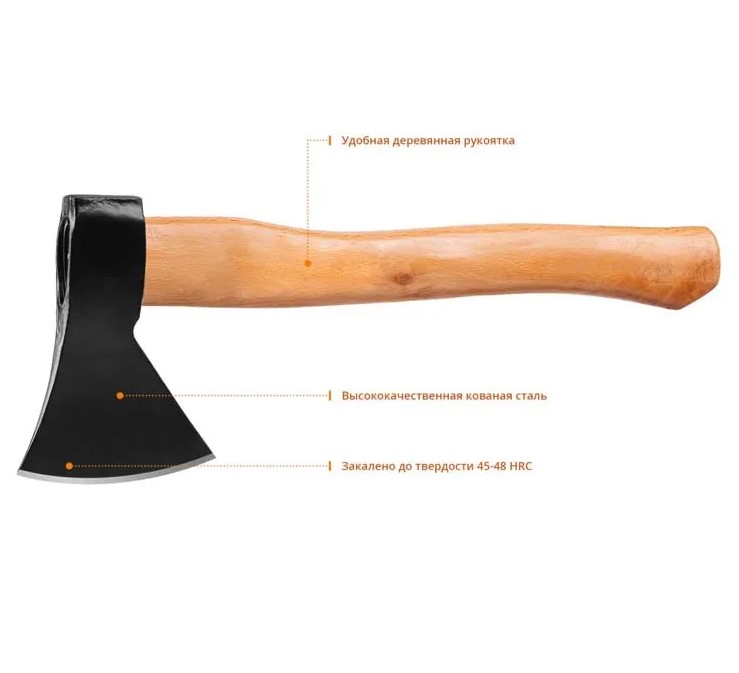 Инструмент универсального назначения, топор с деревянной рукояткой предназначен для колки дров, рубки дерева и кустарника, для простых столярных работ. Топор пригодится в походе, на садовом участке, в хозяйстве, при работе в частном доме. Можно использовать для разделки мяса и костей.