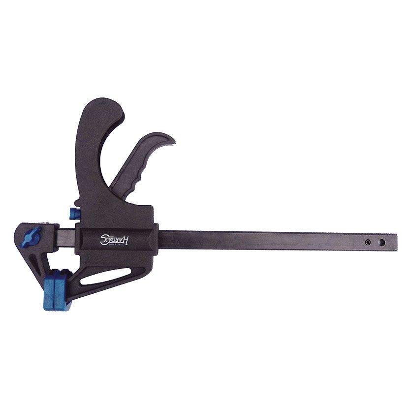 Быстрозажимная струбцина РемоКолор с фиксатором используется для надежной фиксации заготовок в процессе их обработки. Струбцина изготовлена из ударопрочной пластмассы, направляющая - стальная. Оксидированное покрытие исключает возникновение коррозии. Рабочие губки снабжены накладками для предотвращения повреждений обрабатываемых предметов. Опорная губка перемещается и фиксируется по всей длине направляющей при помощи ручки, а также может переставляться на другой конец направляющей, что позволяет использовать струбцину «на разжим».