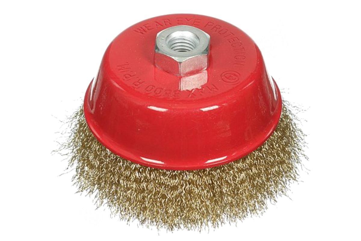 Щетина изготовлена из стальной латунированной, волнистой проволоки, толщиной 0,3 мм. Гайка М14. Применяется для щадящей очистки поверхностей от ржавчины, грязи, удаления лакокрасочных покрытий, получения заданной шероховатости.Форма "чашка" обеспечивает хорошую площадь прилегания к поверхности и предназначена для обработки больших плоскостей.