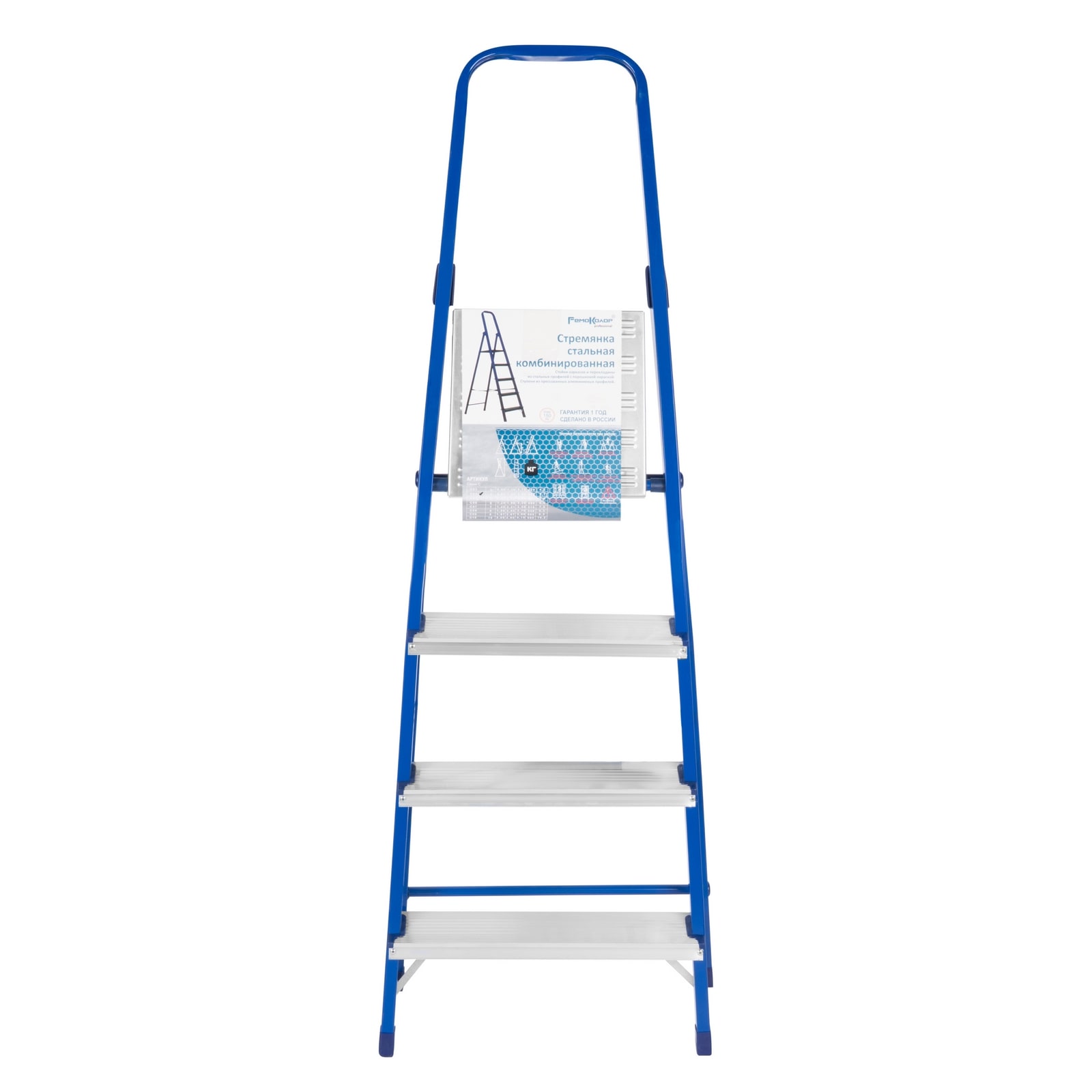Стремянка используется для проведения различных бытовых и строительных работ на высоте. Модель рассчитана на высокую нагрузку, отличается хорошей устойчивостью. Ступени изготовлены из алюминия, рифление снижает вероятность скольжения стопы во время работы. Прочный страховочный ремень предотвращает выход стремянки из рабочего положения, что обеспечивает безопасную работу на верхних ступенях.
