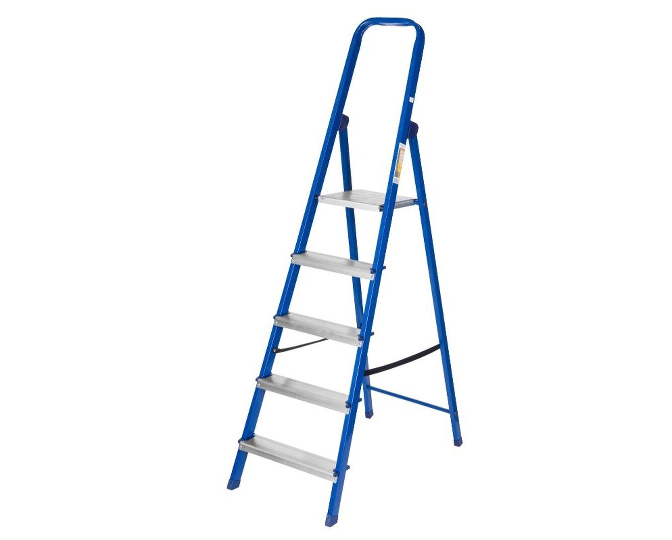 Ступени выполнены из алюминия, имеют специальное рифление, что снижает вероятность скольжения во время работы. Прочный страховочный ремень предотвращает выход стремянки из рабочего положения, что обеспечивает безопасную работу на верхних ступенях. Применяется в быту и строительной области.