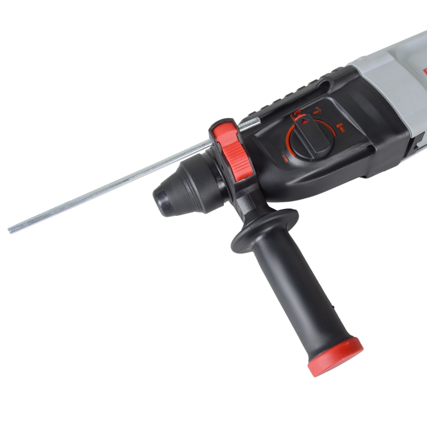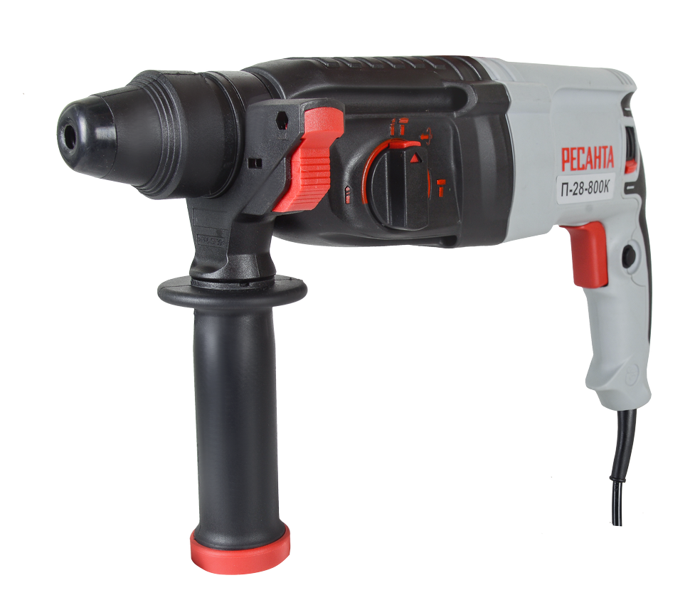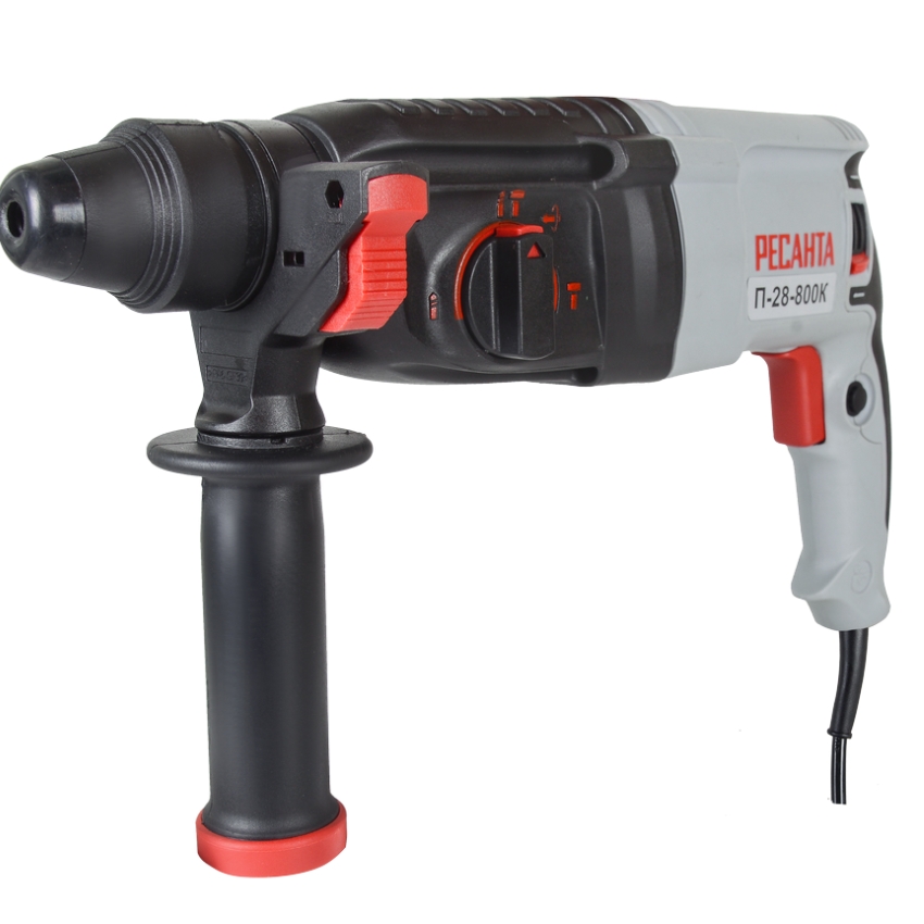 Электрический перфоратор Ресанта П-28-800К мощностью 800 Вт используется для сверления твердых материалов, таких как бетон, камень и кирпич. Частота вращения сверла 0-1100 об/мин регулируется в зависимости от плотности рабочей поверхности. Инструмент имеет 3 режима работы: сверление, сверление с ударом и функция удара с частотой 0-5200 уд/мин. Энергия удара - 3.4 Дж достаточно для продолжительной сложной работы. Хвостовик патрона типа SDS-plus обеспечивает быструю и удобную замену оснастки. Максимальный диаметр отверстий для металла 13 мм, для бетона - 28 мм, для дерева - 40 мм.Перфоратор Ресанта П-28-800К весом 2,7 кг предназначен для бытового использования. Имеет прорезиненный ударопрочный корпус. Функция реверса способствует легкому выкручиванию бура из материала при застревании. Конструкция защищена от попадания пыли. Удобство работы обеспечивает возможность настройки углового положения инструмента. Ограничитель глубины позволяет создавать отверстия с заданными значениями. Блокировка случайного включения