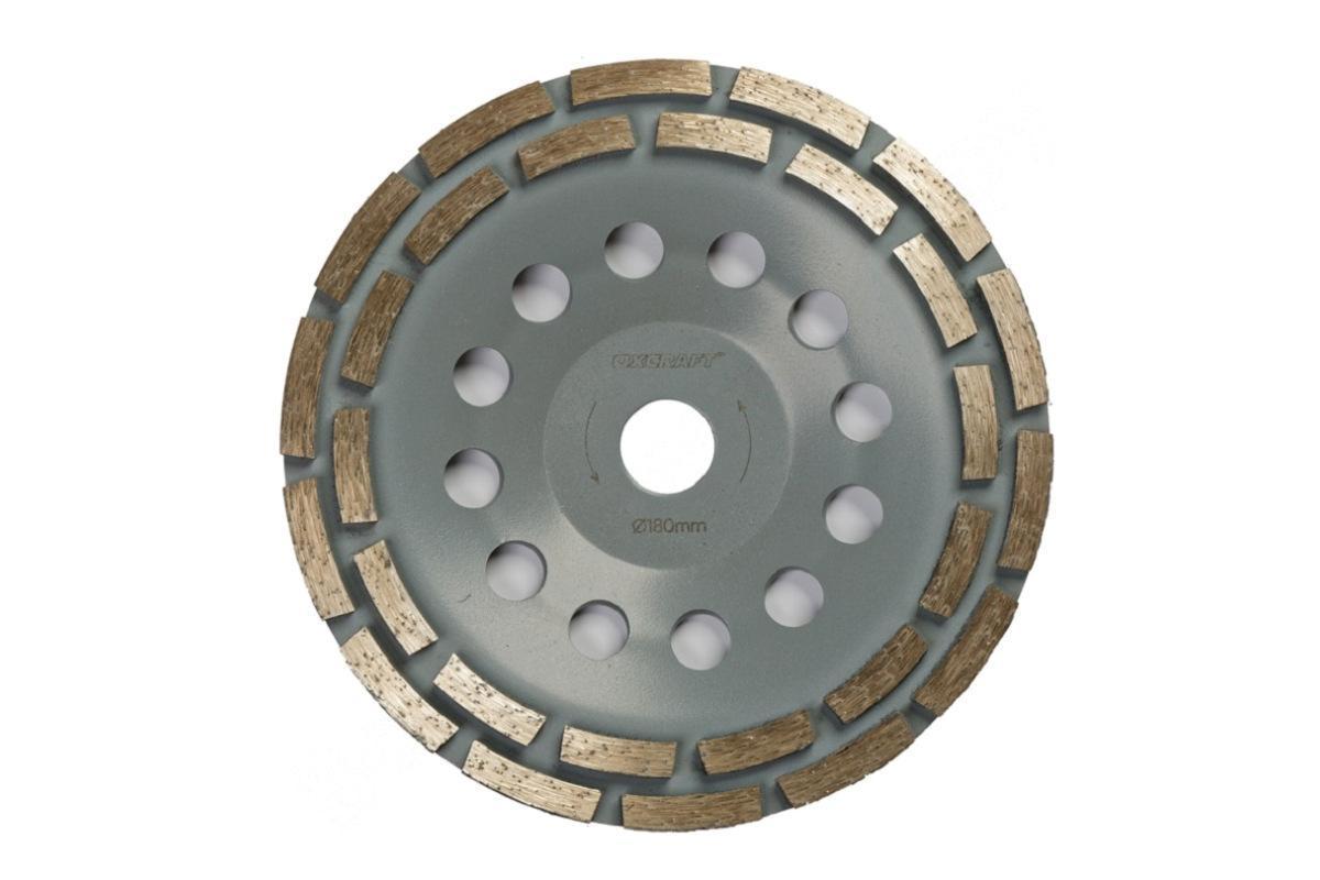 Чашка алмазная шлифовальная двухрядная Premium OXCRAFT PO000134218 используется совместно с угловыми шлифовальными машинами. Применяется для шлифования поверхностей из бетона, кирпичной кладки, гранита, камня. Турбированная поверхность чашки не требует водяного охлаждения во время работы.