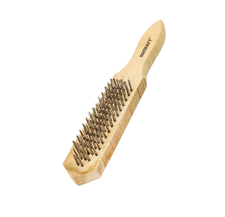 Щетка металлическая имеет деревянную основу. Благодаря стальной щетине щетка применяется для чистки металлических поверхностей. Форма рукоятки способствует удобному удержанию щетки.
