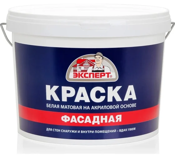 Фасадная краска применяется для окраски фасадов и цоколей зданий, а также стен снаружи и внутри помещений. Благодаря составу, продукт обладает отличными адгезионными свойствами к поверхностям: бетонным, оштукатуренным, кирпичным, асбоцементным, цементным, ДСП и ДВП. Краска равномерно распределяется по основанию при помощи валика, кисти или краскораспылителя, образуя прочное покрытие стойкое к вредным факторам окружающей среды. Состав белого цвета имеет высокую степень укрывистости. Возможность ручной колеровки акриловыми колорантами или пигментами для красок на водной основе, позволяет получить желаемый оттенок. Преимущества: Для наружных и внутренних работ. Высокая адгезия к минеральным поверхностям. Отличная укрывистость. Атмосферостойкая. Возможность ручной колеровки. Простое нанесение (не требует специального оборудования).