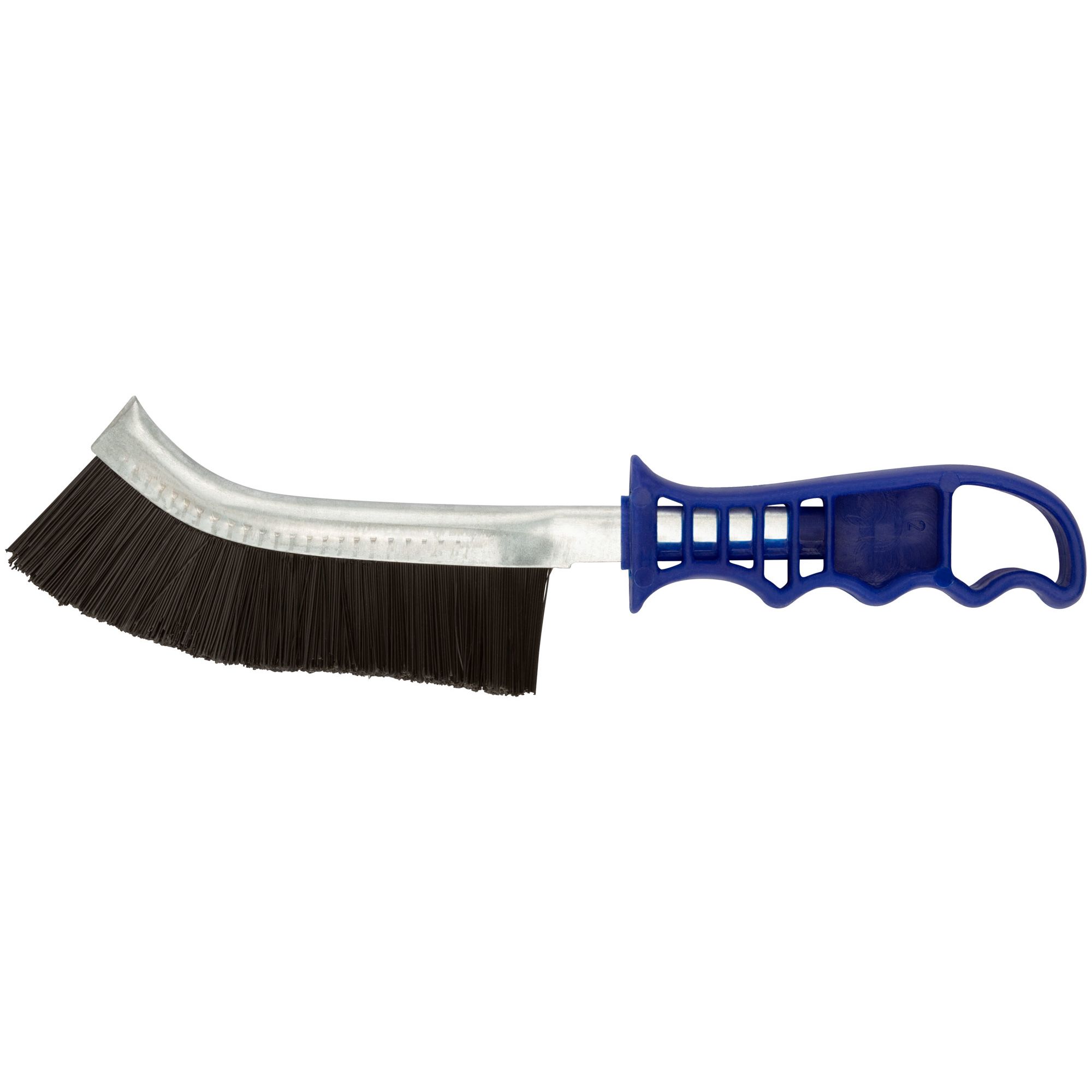 Корщетка с изогнутой пластиковой ручкой, нейлоновая тип F. Для удаления мусора с рабочих поверхностей. Материал: нейлоновая щетина, пластиковая ручка.