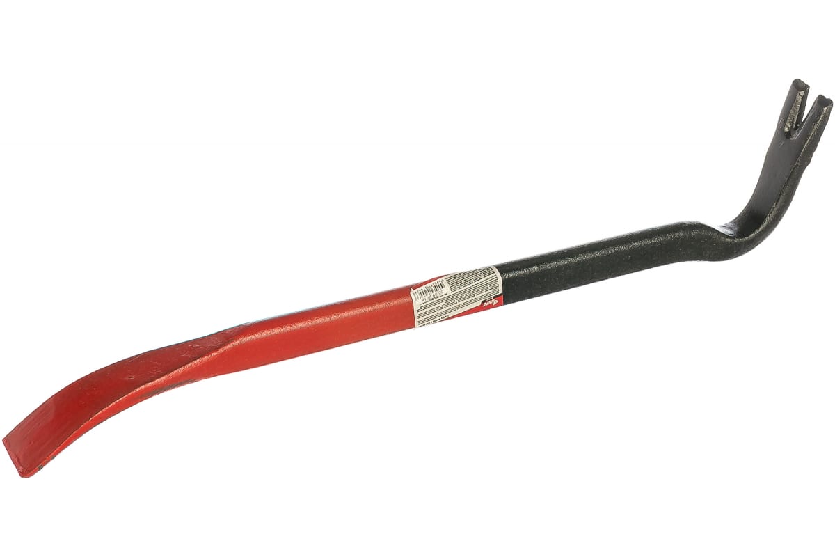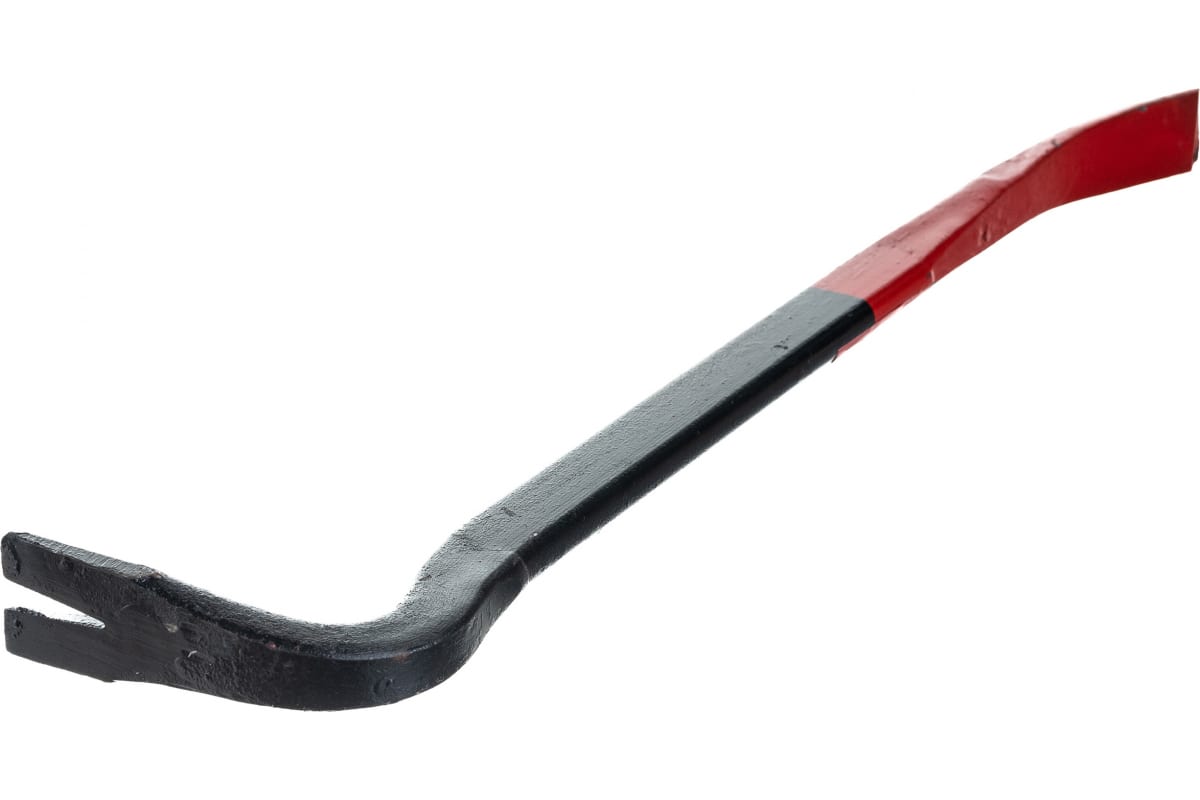 Усиленный гвоздодер 450х25x12 мм 46944 имеет в основании стержень диаметром 25 мм, который обеспечивает передачу усилия к демонтируемым элементам. Перед каждой рабочей зоной имеется выступ, играющий роль упора для многократного увеличения усилий.
