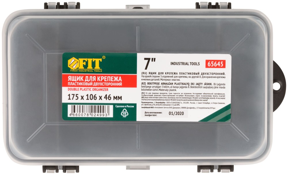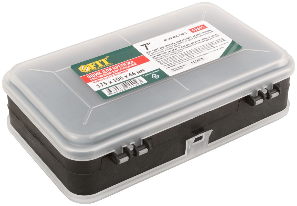 Двусторонний ящик-органайзер FIT 65645 выполнен из пластика и служит для хранения крепежных изделий. Имеет 5 отделений с одной стороны и 8 с другой, где удобно размещаются необходимые аксессуары и различные мелочи. Прозрачная крышка позволяет видеть расположение крепежа внутри. Благодаря компактным габаритам органайзер легко помещается в ящик для инструментов. Рекомендуется для использования домашнему мастеру.