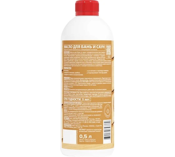 Масло для бань и саун предназначено для защиты полков и других поверхностей в банях и саунах от грязи и влаги, препятствует образованию деревоокрашивающих (синевы) и дереворазрушающих грибов, выделяет структуру древесины, делая ее более яркой. Создает декоративно-естественное покрытие. Надежно фиксируется в древесине, кроме этого, отсутствие лакокрасочной пленки на поверхности позволяет древесине изменяться в объеме под воздействием внешних факторов (температуры и влажности) без растрескивания и отслаивания самого покрытия. Безопасно при контакте с кожей человека и животных, не оказывает раздражающего воздействия. Преимущества: Neomid 0,25 л Н-МаслоСауна-0,25 не имеет резкого запаха. Для защиты полков в банях и саунах от грязи и влаги. Выделяет структуру древесины, делая ее более яркой. Создает декоративно-естественное покрытие. Безопасно при контакте с кожей человека и животных. Не оказывает раздражающего воздействия при высоких температурах. Обладает проникающим действием и надежно фиксируется в древесине. Не образует лакокрасочной пленки на поверхности. Позволяет древесине изменяться в объеме под воздействием температуры и влажности. Не растрескивается и не отслаивается со временем. Увеличивает срок службы древесины. Паро- и газопроницаемый.