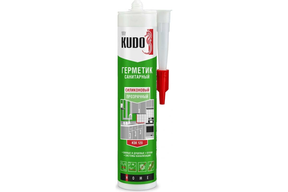 Силиконовый санитарный герметик KUDO (прозрачный; 280 мл) KSK-120 применяется при общих бытовых, ремонтных и строительных работах. Cодержит специальные антисептические добавки, препятствующие образованию плесени и грибков. Идеально подходит для помещений с повышенной влажностью: ванных комнат, душевых кабин, кухонь и для остекления. Применяется для уплотнения соединительных швов вокруг ванн, раковин, бассейнов, герметизации стыков при установке сантехнического оборудования, гидроизоляции поверхностей, заделки швов между плитками. Устойчив к воздействию большинства моющих и чистящих средств, стоек к УФ‑излучению, атмосферным воздействиям, температурным перепадам и практически любым агрессивным средам.