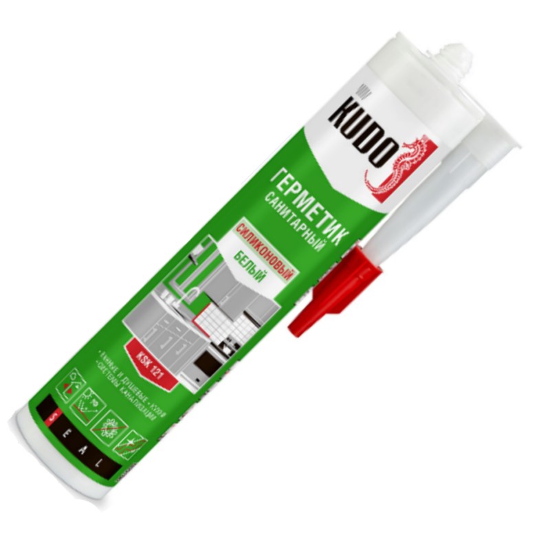 Силиконовый санитарный герметик KUDO (белый; 280 мл) KSK-121 подходит для помещений с повышенной влажностью: ванных комнат, душевых кабин, кухонь и для остекления. Применяется для уплотнения соединительных швов вокруг ванн, раковин, бассейнов, герметизации стыков при установке сантехнического оборудования, гидроизоляции поверхностей, заделки швов между плитками. Образует прочный долговечный шов, после отверждения сохраняет деформационную подвижность до ±25%, не собирает пыль, устойчив к воздействию большинства моющих и чистящих средств, стоек к УФ‑излучению, атмосферным воздействиям, температурным перепадам и практически любым агрессивным средам.