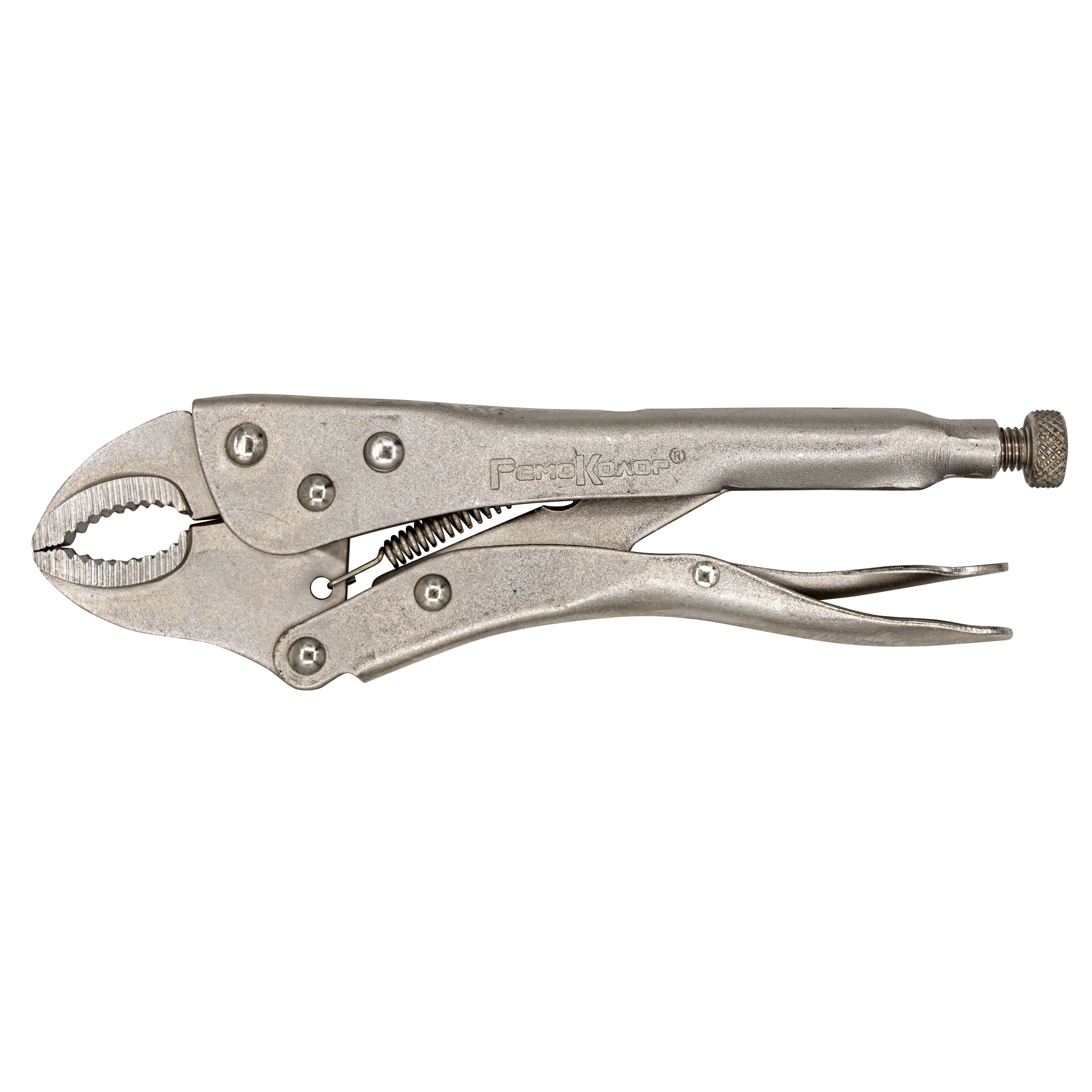Зажим с фиксатором РемоКолор 250мм 34-3-250 обеспечивает надежную фиксацию и высокое давление опрессовки благодаря особо прочной конструкции и системе коленчатых рычагов.Корпус приспособления изготовлен из кованой стали, хромированной для защиты от коррозии и прошедшей процесс закалки.