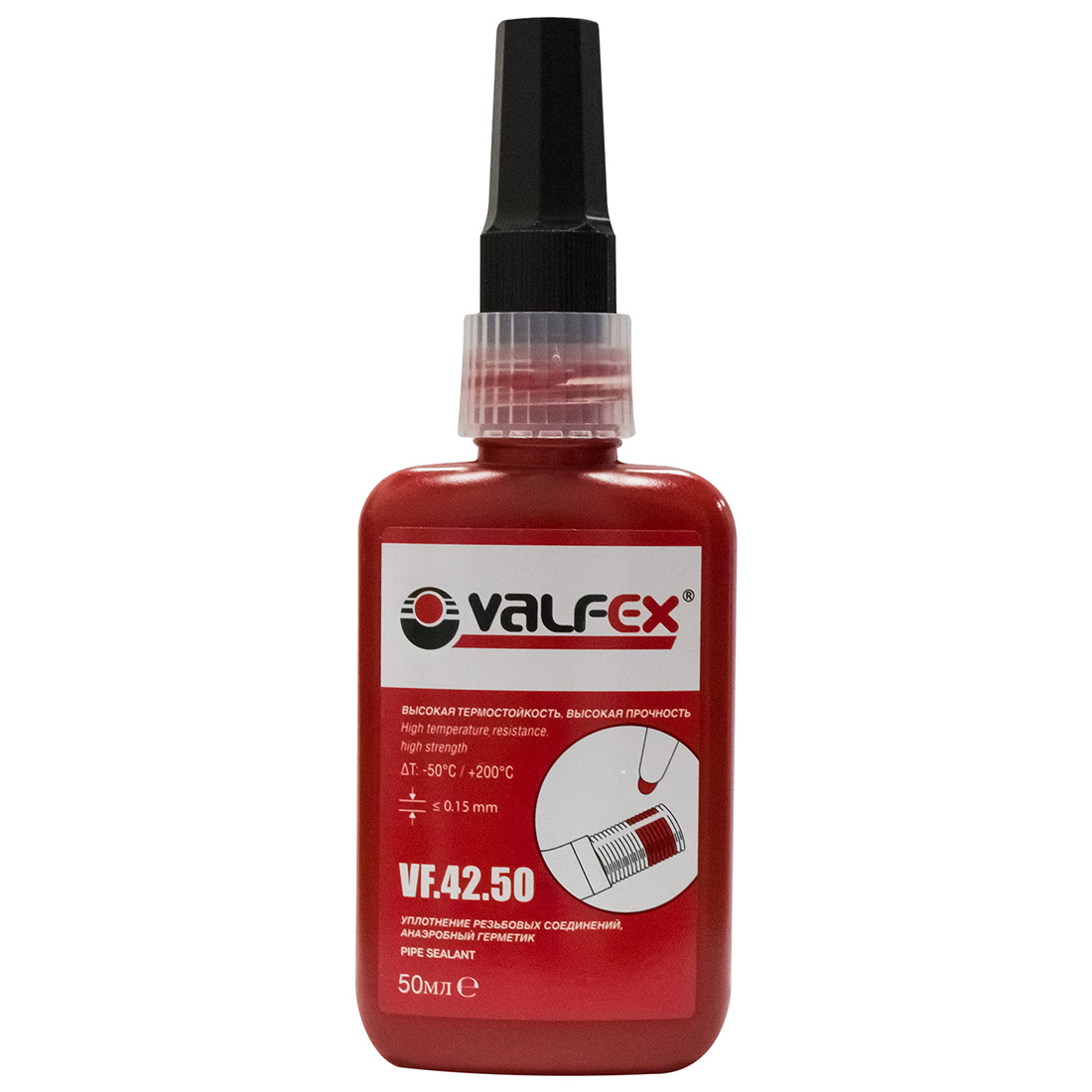 Однокомпонентный анаэробный клеи-герметик Valfex красный тюбик 50 мл. (демонтаж с нагревом) не содержат растворителей, создают прочную пластиковую герметичную прокладку при нанесении между металлическими поверхностями, расположенными близко друг к другу, и предотвращают контакт с кислородом.