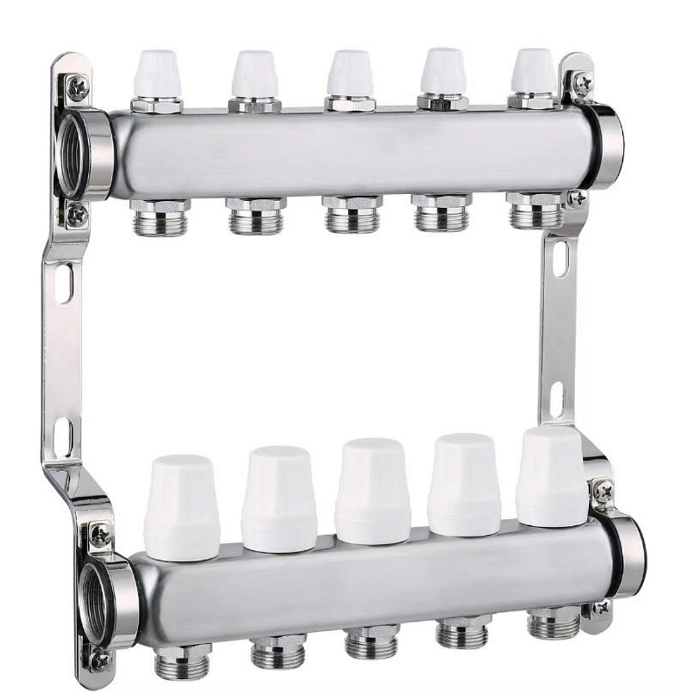 Коллекторная группа из нержавеющей стали со встроенными расходомерами и регулирующими клапанами ТМ VALFEX – позволяет производить балансировку петель при включенном циркуляционном насосе с помощью настроечных клапанов без фиксации, с расходомерами. В комплекте имеются автоматические воздухоотводчики, позволяющие удалять из системы накопление воздуха и газов.
