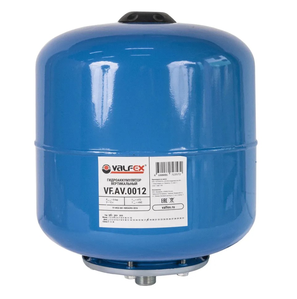 Мембранные баки VALFEX предназначены для систем холодного водоснабжения, в том числе – питьевого, с рабочим давлением до 8 бар. Допускается также их использование в системах горячего водоснабжения и отопления с температурой теплоносителя не более +99 °С. Заводское давление в газовой камере (преднастройка) – 2 бара. Баки объемом 50 – 100 л оснащены дополнительными опорами, что позволяет устанавливать баки на пол.