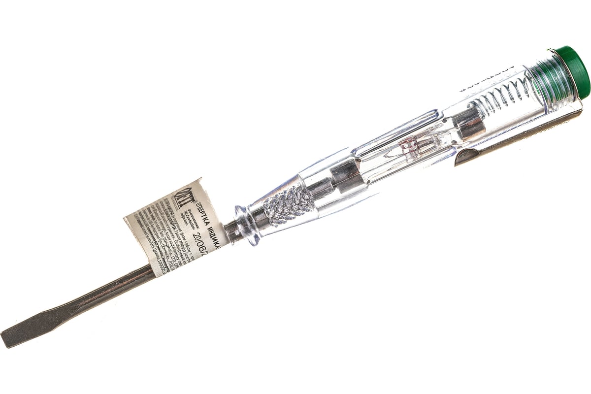 Отвертка индикаторная предназначена для определения наличия переменного напряжения от 100 до 500 В контактным способом. О наличии напряжения оповещает световой индикатор. Изоляция жала отверток повышает безопасность работы. Хромированное покрытие жала предотвращает коррозию. Эргономичная рукоятка имеет упор для большого пальца. Клипса на рукоятке позволяет носить отвертку на ремне.