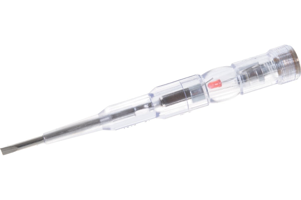 Отвертка индикаторная 56531 будет полезна вам как в быту, так и на работе. Изделие представляет из себя индикаторную отвертку классической конструкции, которая предельно проста в эксплуатации, но чрезвычайно полезна. Индикаторная отвертка способна определять наличие напряжения, величина которого лежит в пределах от 70 до 250 В. Вы также сможете определять разрыв цепи. Световую сигнализацию осуществляет яркий светодиод красного цвета. Отвертка комфортна, надежна, долговечна и безопасна. Наличие клипсы на корпусе дает возможность прикреплять отвертку к одежде.