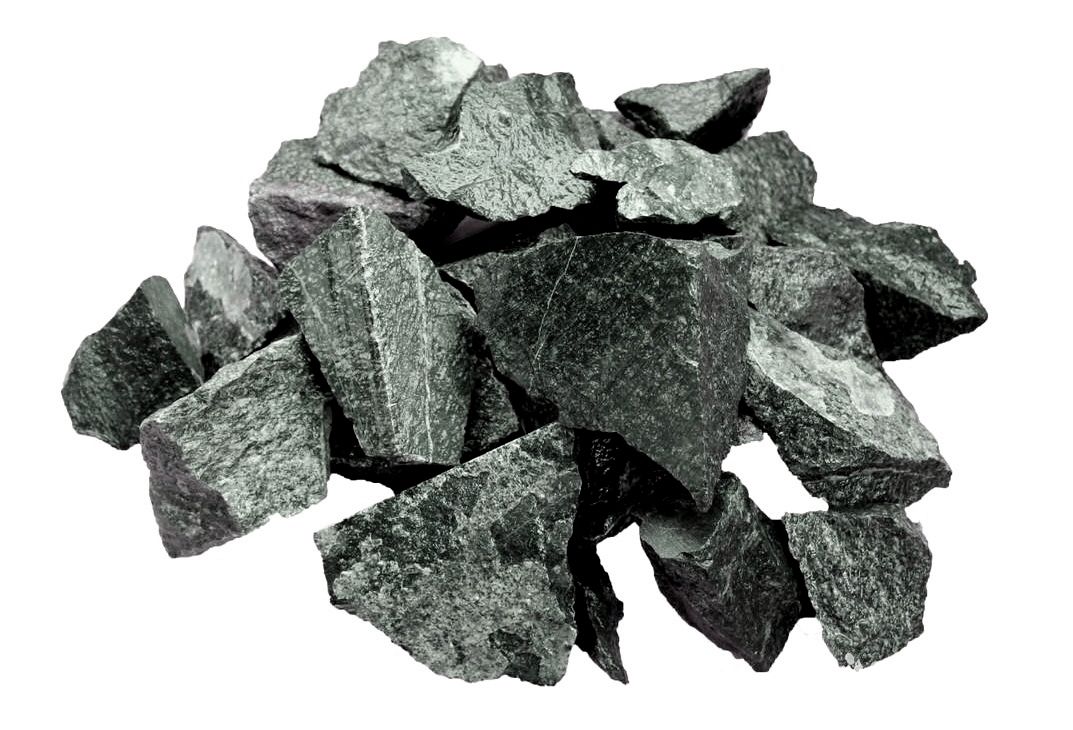 Серпентинит (змеевик, аптекарский камень) - горная порода темно-зеленого цвета с характерным змеиным рисунком. Окраска минерала может быть зеленовато-желтой, темно-зеленой. Серпентинит хорошо переносит перепады температур, даже такие, как окатывание горячего камня холодной водой. Он не будет "выстреливать" в разные стороны острыми осколками - камень абсолютно безопасен для использования в каменке! Серпентинит очень быстро нагревается и довольно длительное время сохраняет тепло. Камень для бани серпентинит (змеевик) не имеет противопоказаний к использованию в печи, а даже рекомендован людям при простуде, воспалении почек и заболеваниях органов пищеварительной системы. Полезные свойства серпентинита для бани - это лечение головной боли, нормализация артериального давления, уменьшение нервной возбудимости, снятие стресса. Также серпентинит очищает наш организм как внутренне, выводя шлаки, так и на энергетическом уровне, забирая отрицательную энергию. Еще одним положительным качеством серпентинита является то, что он способствует быстрой консолидации переломов и восстанавливает функции суставов после повреждения.